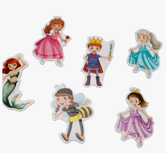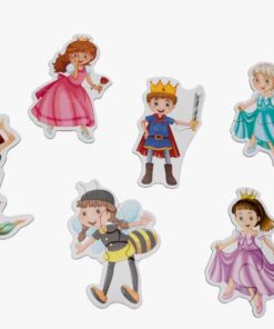 Personajele viu colorate – prințese, prinț, sirenă, albină și alte figuri de basm – transformă joaca într-o experiență magică, stârnind imaginația copiilor și primele povești inventate de ei.