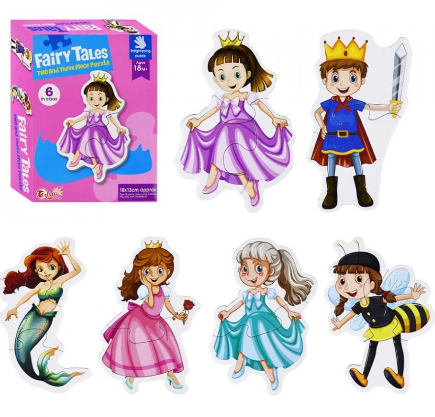 Set 6 puzzle-uri bebelusi din 2 sau 3 piese mari, Personaje Povesti, 18 luni