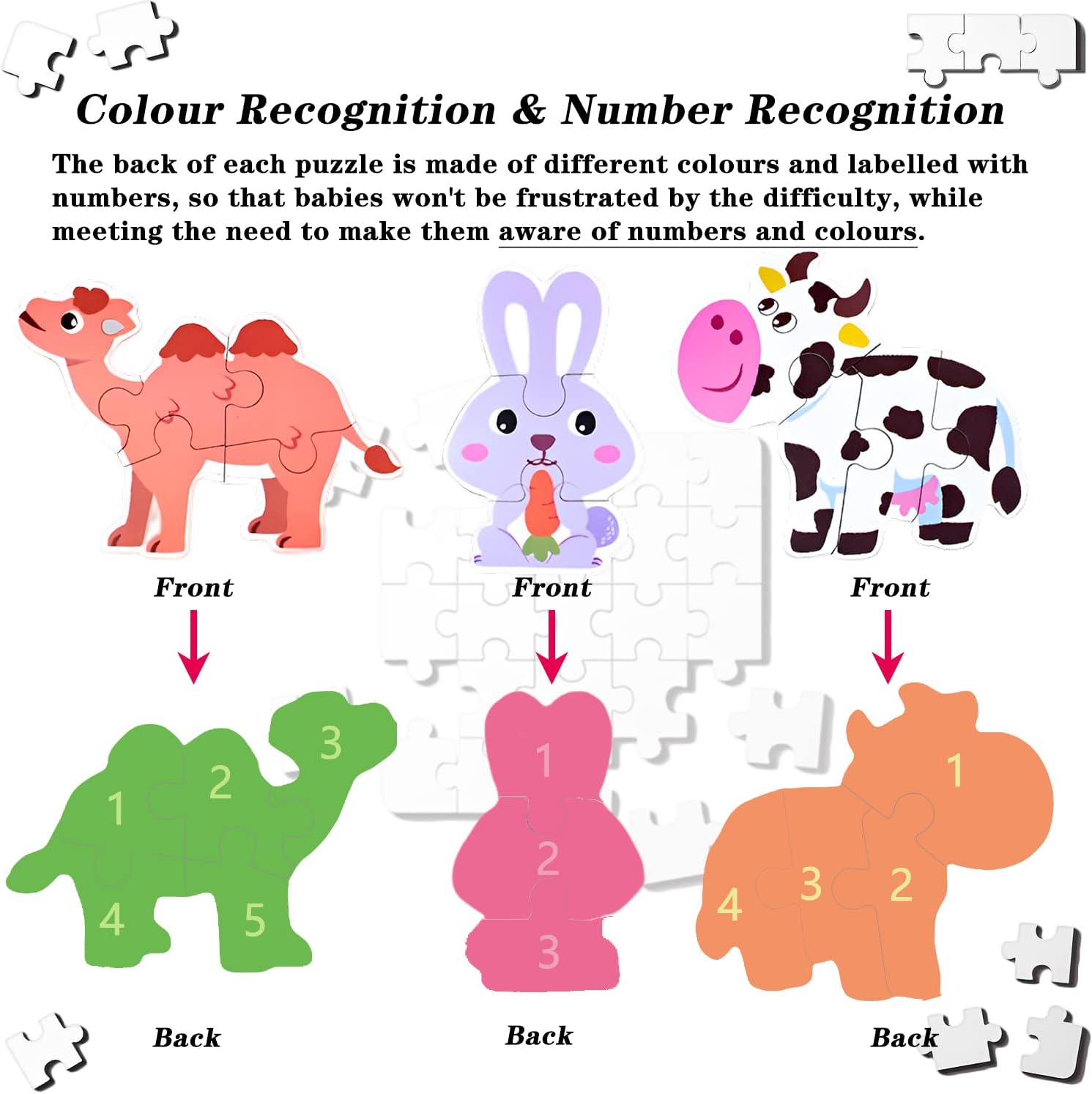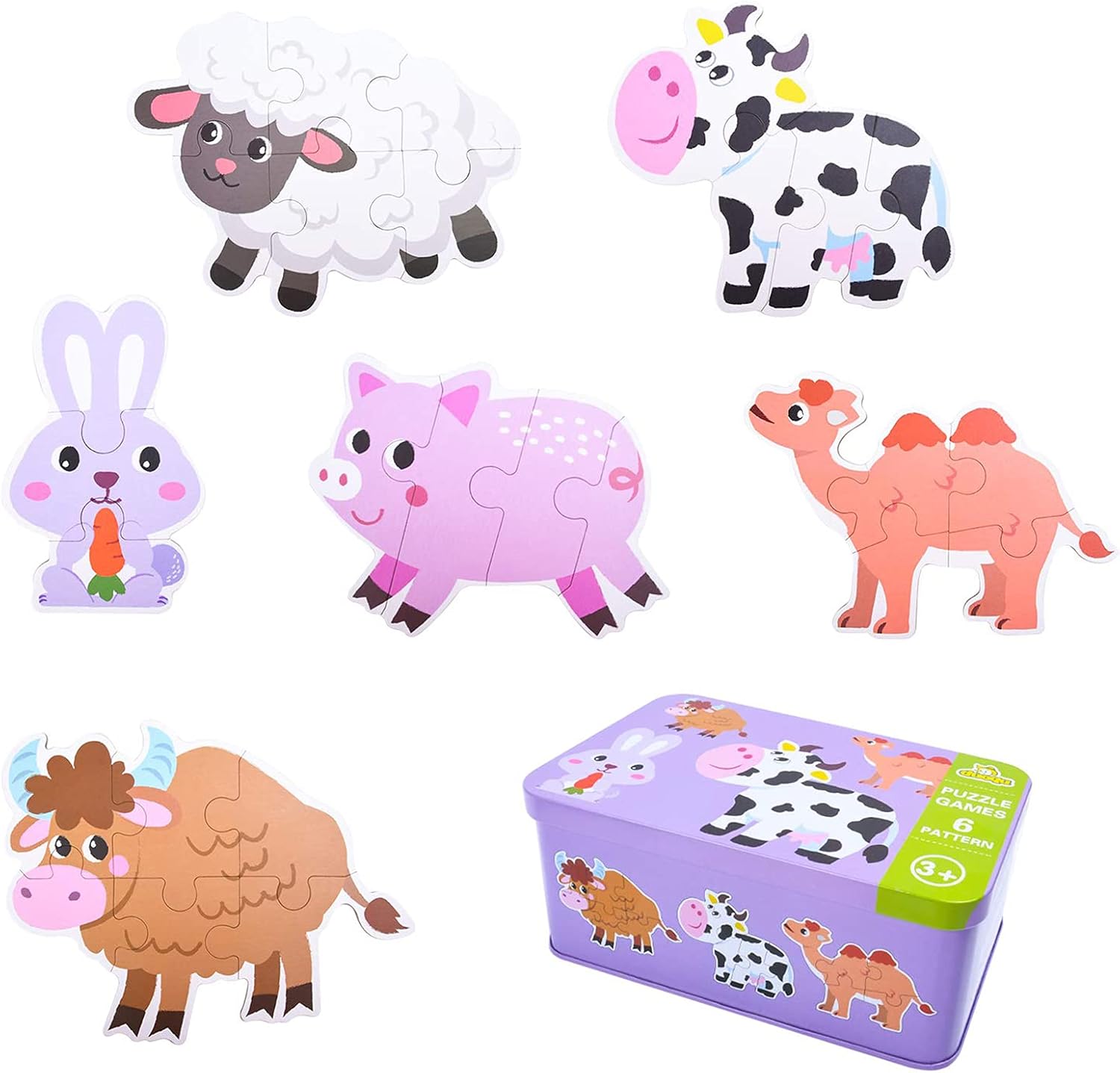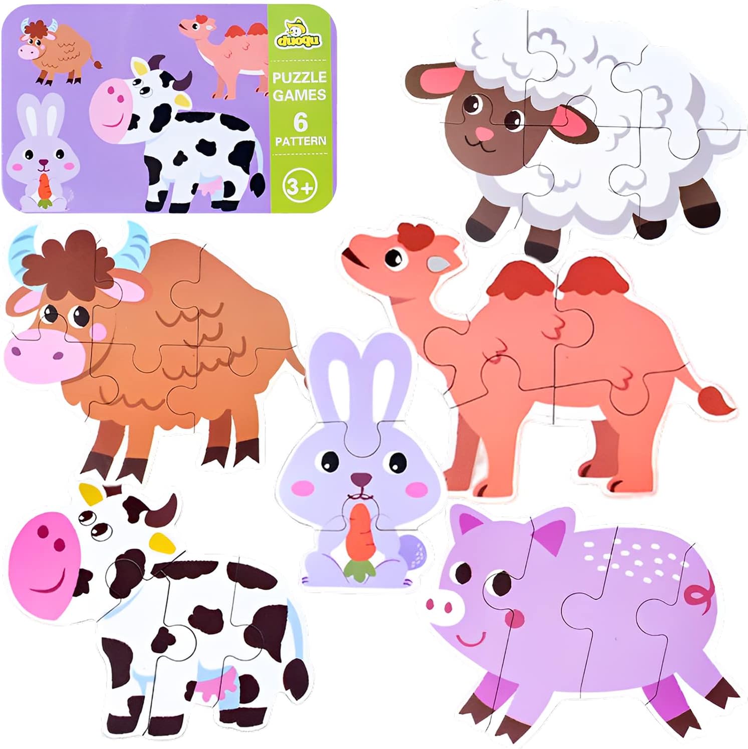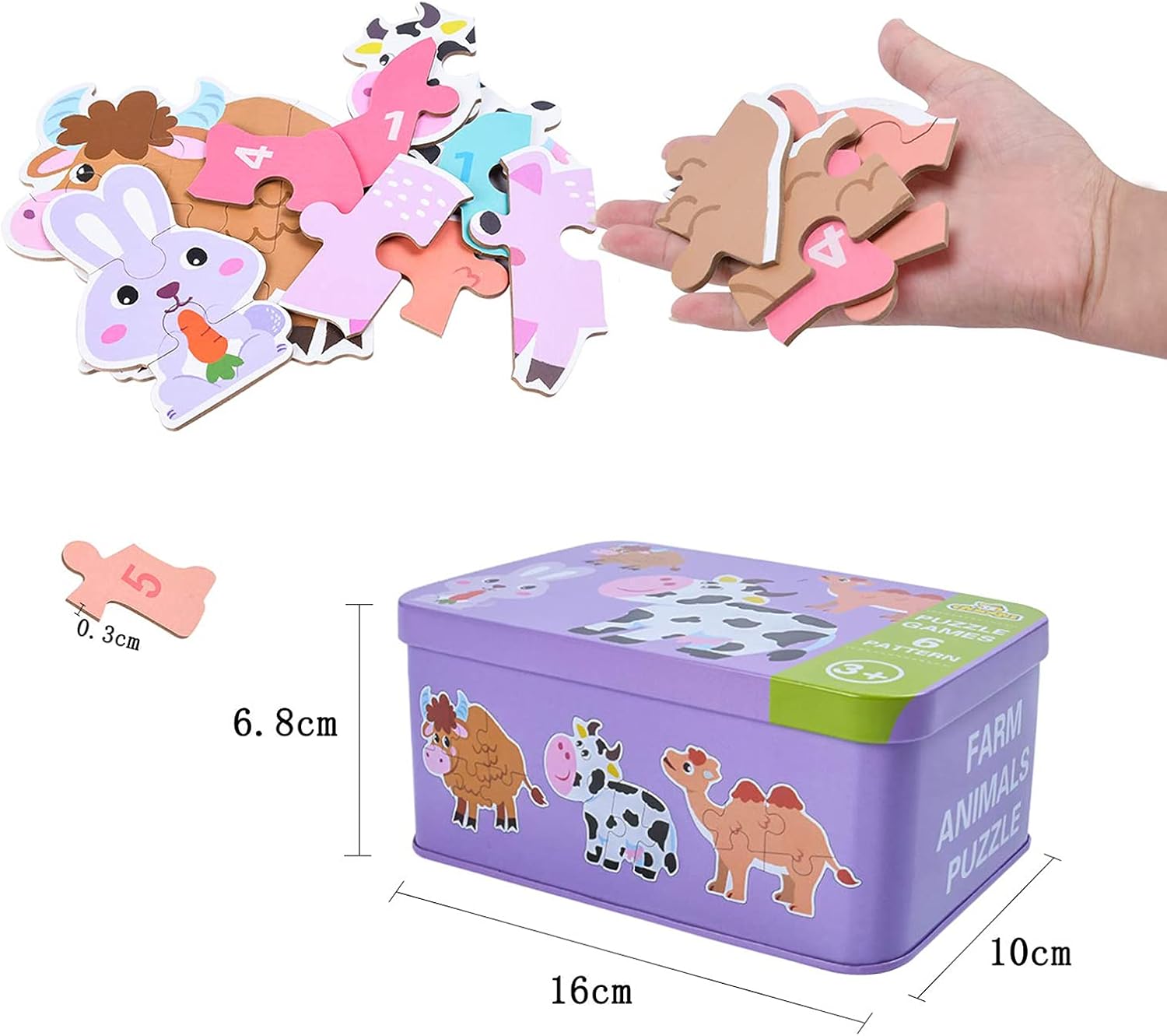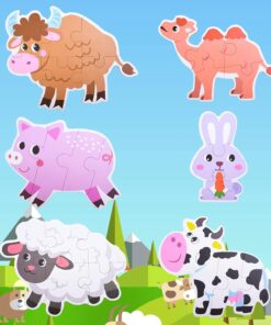 Conținut: 6 puzzle-uri diferite (vacă, porc, oaie, iepuraș, cămilă, bivol).