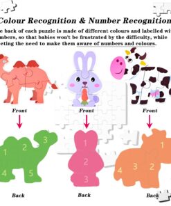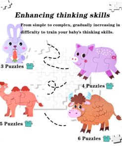Acest set educativ conține 6 puzzle-uri colorate cu animale de la fermă, special concepute pentru a stimula curiozitatea și îndemânarea copiilor. Fiecare puzzle are piese mari, ușor de manevrat, perfecte pentru mâinile mici ale copiilor de vârstă preșcolară.