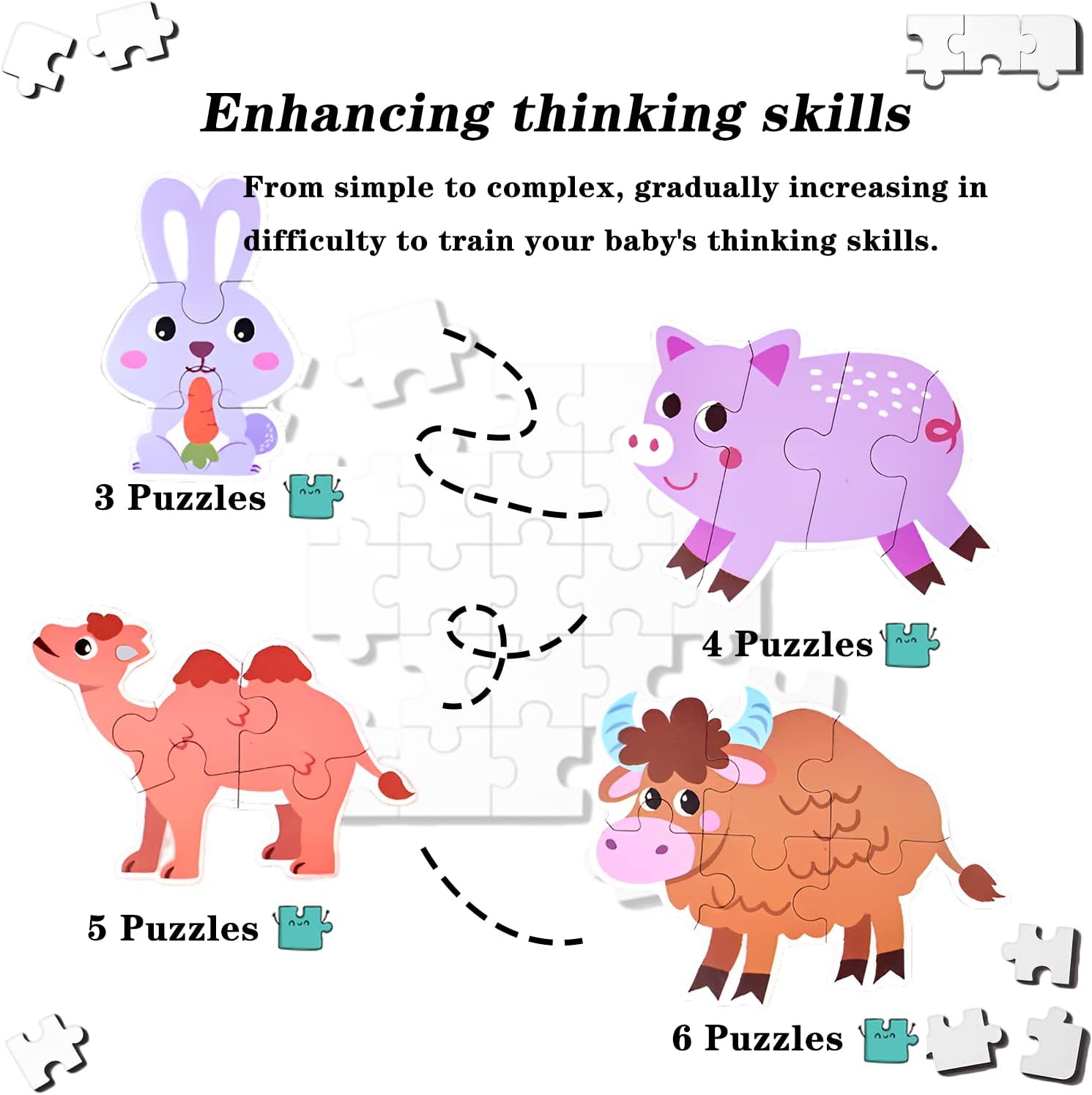 Puzzle-urile pot fi introduse treptat, câte unul pe rând, pentru a nu suprasolicita copilul. Părintele poate ghida copilul să observe formele și culorile, să denumească animalele și să povestească despre viața la fermă. Activitatea poate fi transformată într-un joc de rol, în care copilul „are grijă” de animalele de la fermă după ce le reconstituie.