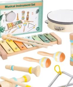 Setul de 7 instrumente muzicale din lemn este conceput special pentru a introduce copiii în lumea sunetelor și a ritmului, stimulând dezvoltarea senzorială și coordonarea mână-ochi. Fiecare instrument este realizat din materiale sigure, atent finisate pentru a se potrivi mânuțelor mici ale copiilor.