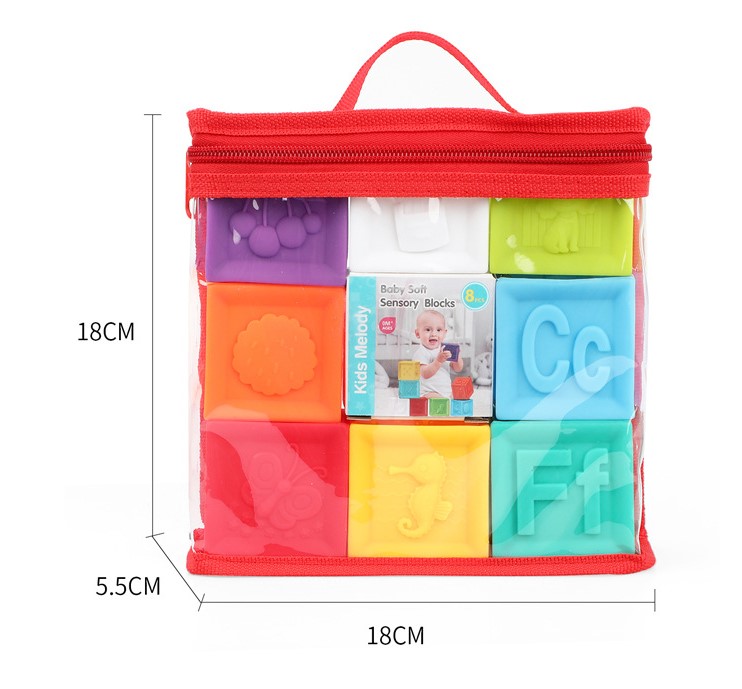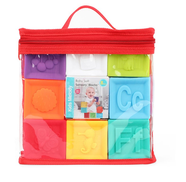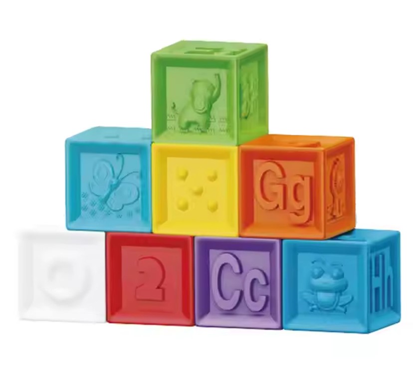 Set 8 cuburi pentru bebelusi, din silicon, cu texturi, 6 luni+