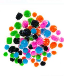 Setul pentru lucru manual acasa sau la gradinita contine 80 bucati pom-pom colorate in diverse culori: albastru, mov, portocaliu, galben, rosu.