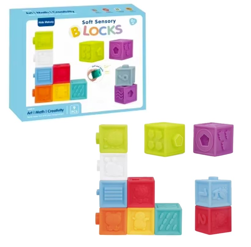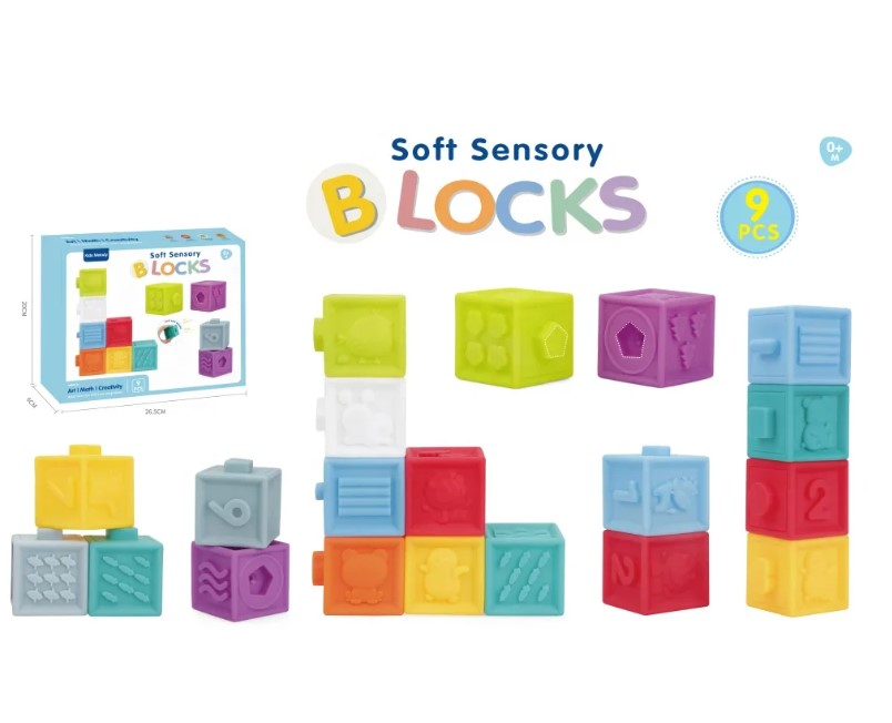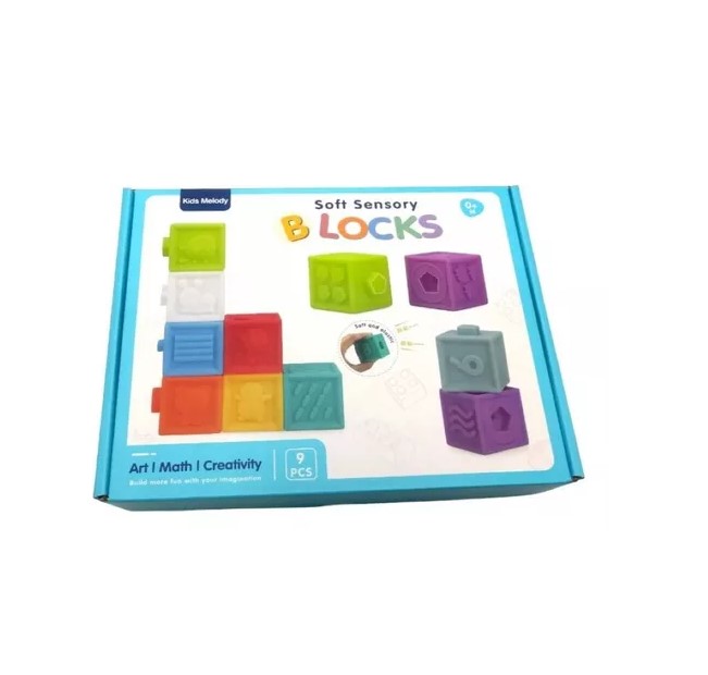 Set 9 cuburi pentru bebelusi, din silicon, cu texturi, 6 luni+
