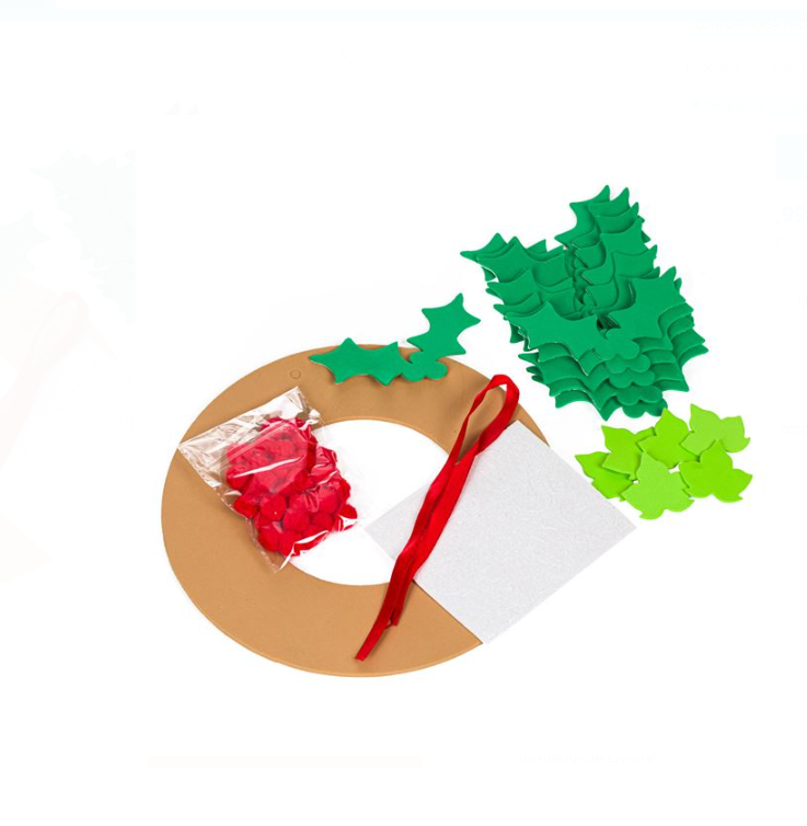 Set creatie din spuma de craciun, creati o coronita decorata cu pompon rosii. Ambalajul contine panglica rosie pentru fixare.