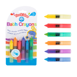 Setul de 6 creioane colorate va face din fiecare baie o distractie pentru cei mici. In timp ce face baie, copilul va putea desena pe cada, gresie sau faianta.