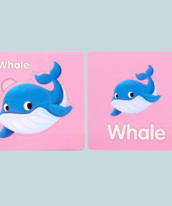Design dublu: pe o parte insecta este completă cu denumirea în limba engleză, iar pe cealaltă parte copilul rezolvă puzzle-ul.