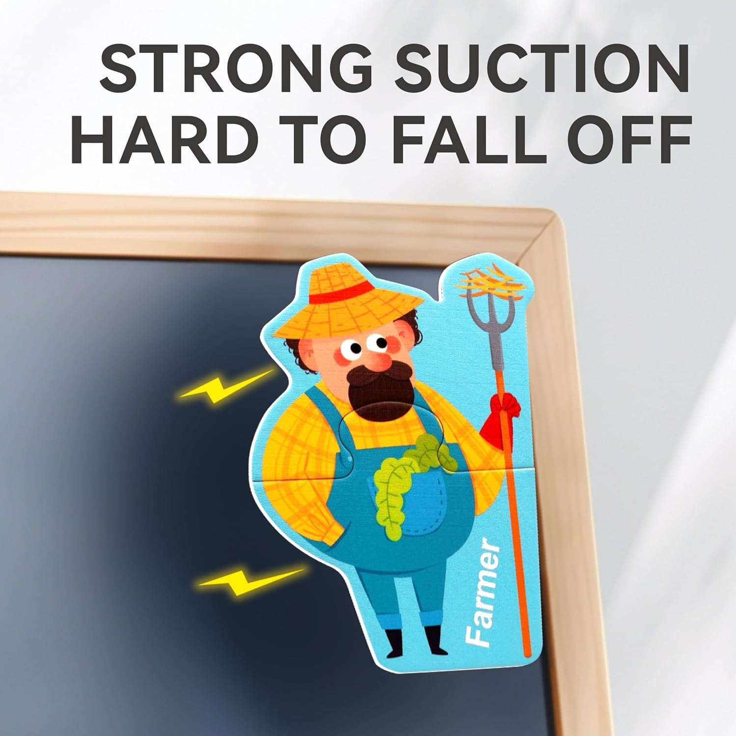 Setul puzzle magnetic Animale de la fermă este ideal pentru părinții care caută o jucărie educativă, practică și distractivă. Piesele sunt sigure, durabile și ușor de manevrat, iar copiii vor învăța prin joacă despre animale, culori și vocabularul în engleză. Perfect pentru utilizarea acasă, la grădiniță sau ca activitate interactivă de familie.