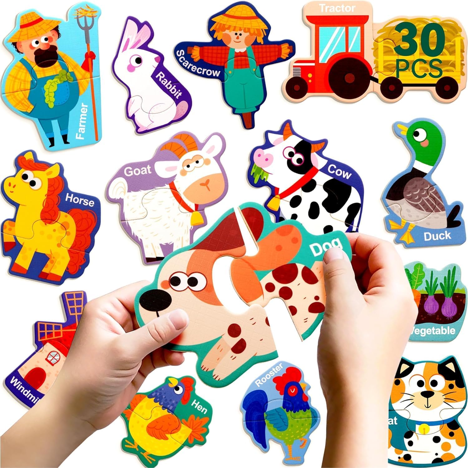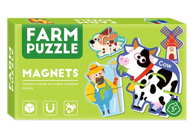 Set cu puzzle magnetic din 2 piese, Animale de la ferma – 30 piese, 3 ani+