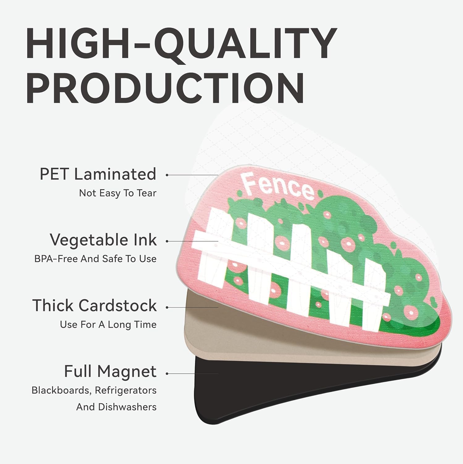Material: carton gros, laminat și strat magnetic rezistent, sigur pentru copii.