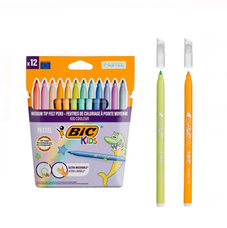 Cariocile Lavabile Bic produc o linie fina de 0.9 mm pentru a desena linii clare dar si detalii de colorat complexe, in plus, nu trebuie sa te ingrIjorezi in cazul in care copiii deseneaza pe hainutele lor,cerneala este pe baza de apa si se spala de pe majoritatea tesaturilor. Proiectate cu un varf mediu fix care nu poate fi impins odata ce sunt folosite, ele pot fi utilizate pe scara larga atat pentru evidentierea contururilor cat si pe suprafete mari de colorare.