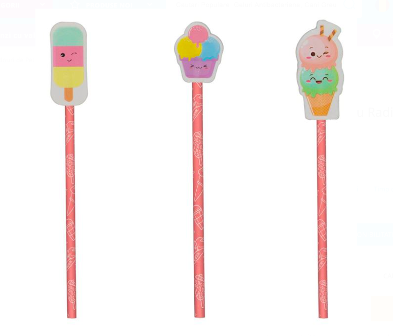 Prima pagină > Jucarii Copii > Rechizite scolare, articole si papetarie copii > Creioane colorate > Set de 3 creioane HB cu radiera, Inghetata