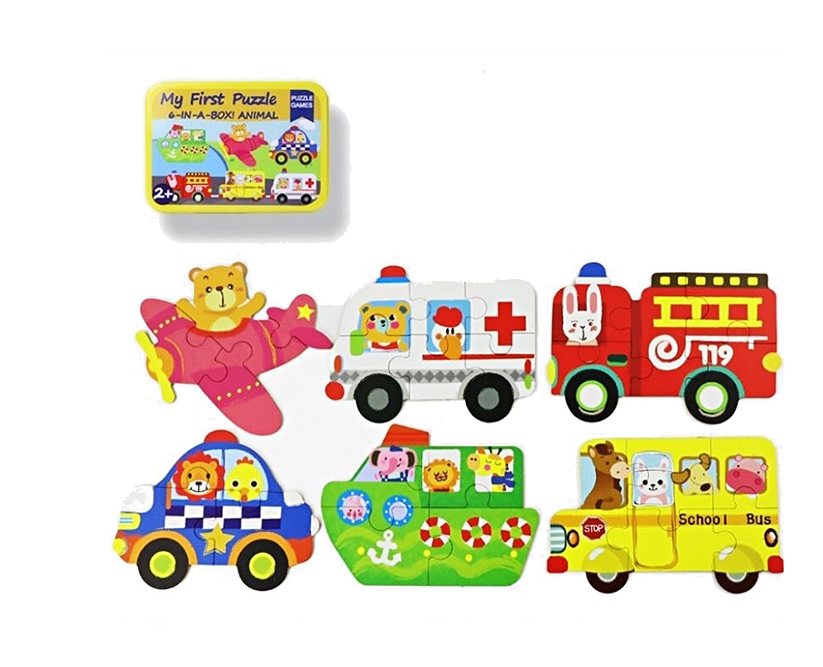 Set de 6 puzzle-uri din lemn, Mijloace de transport
