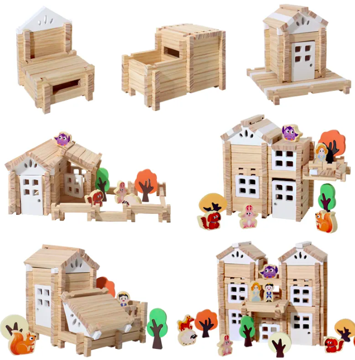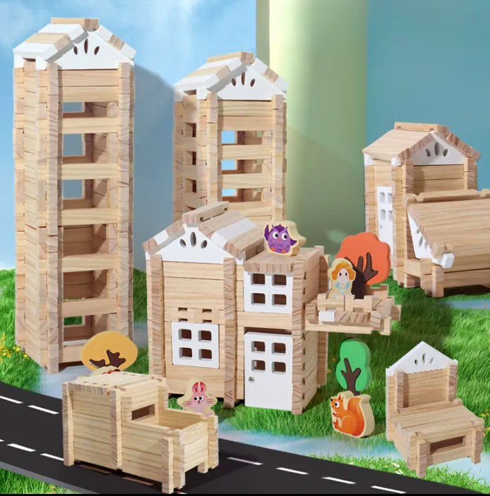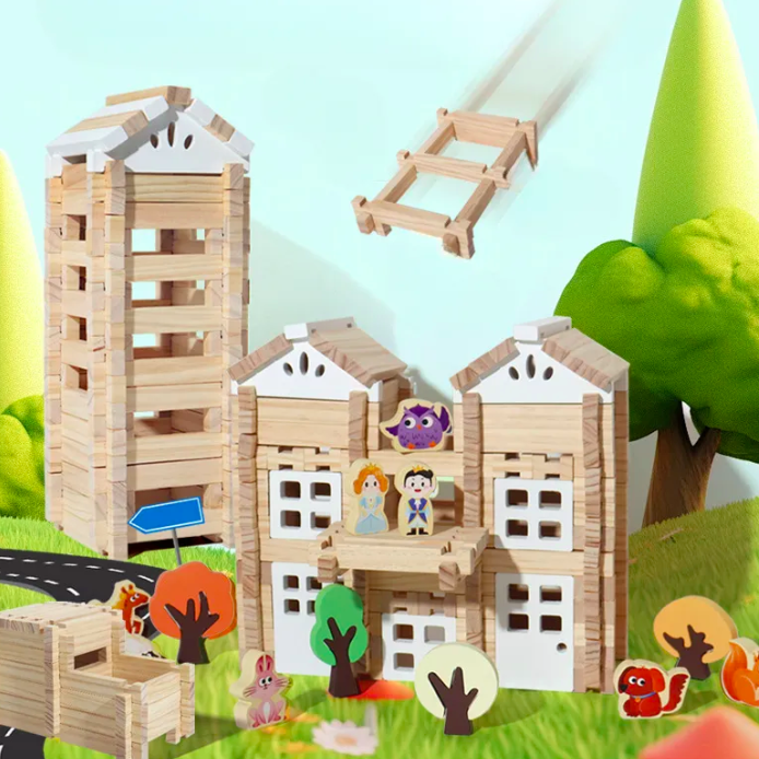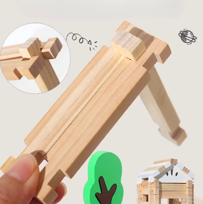 Un set captivant care încurajează creativitatea și gândirea logică a copiilor, oferindu-le șansa de a construi clădiri, vehicule și alte structuri din lemn într-un mod interactiv și educativ.