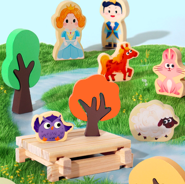 - Figurine din lemn (animale, oameni, copaci).