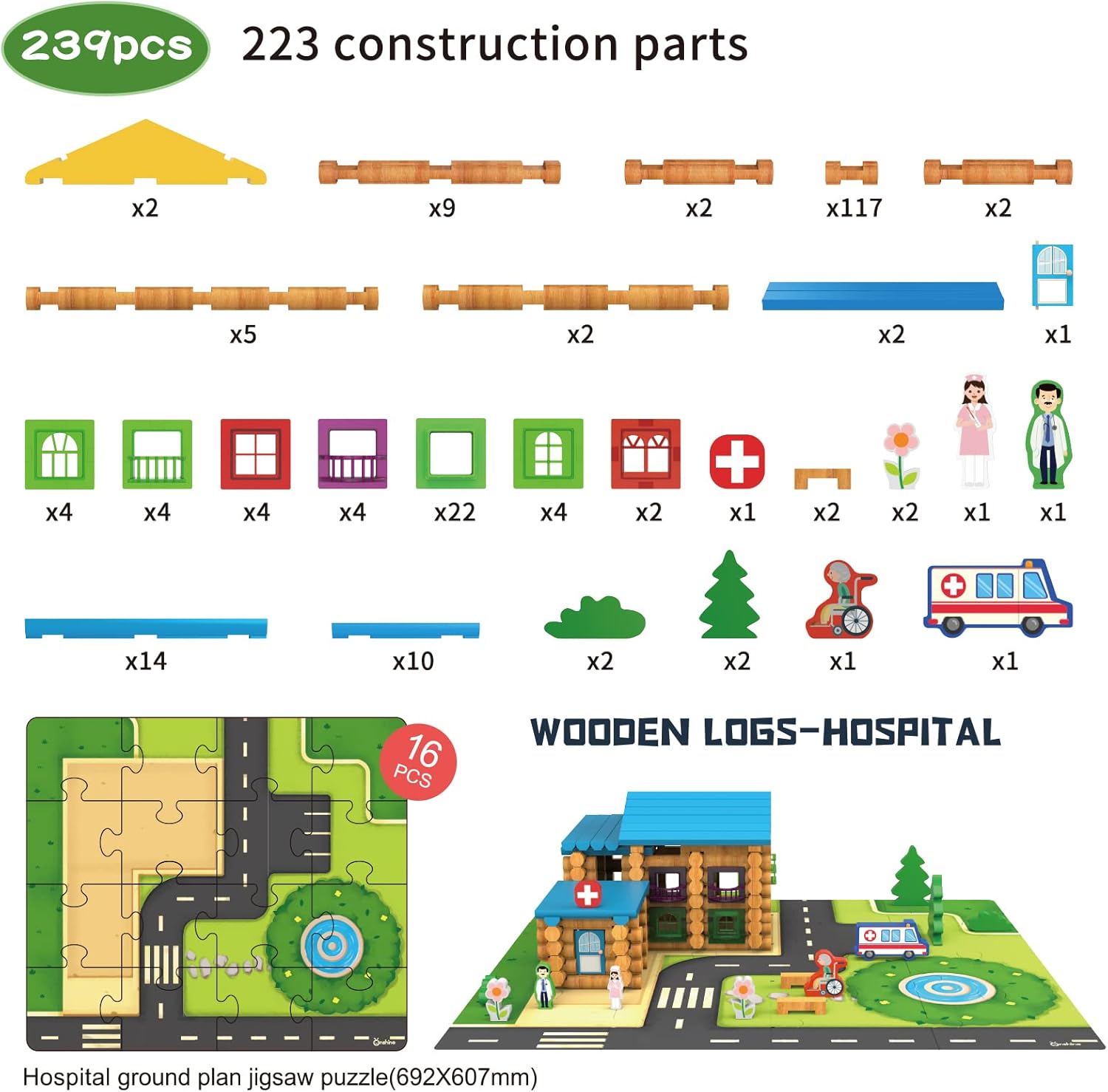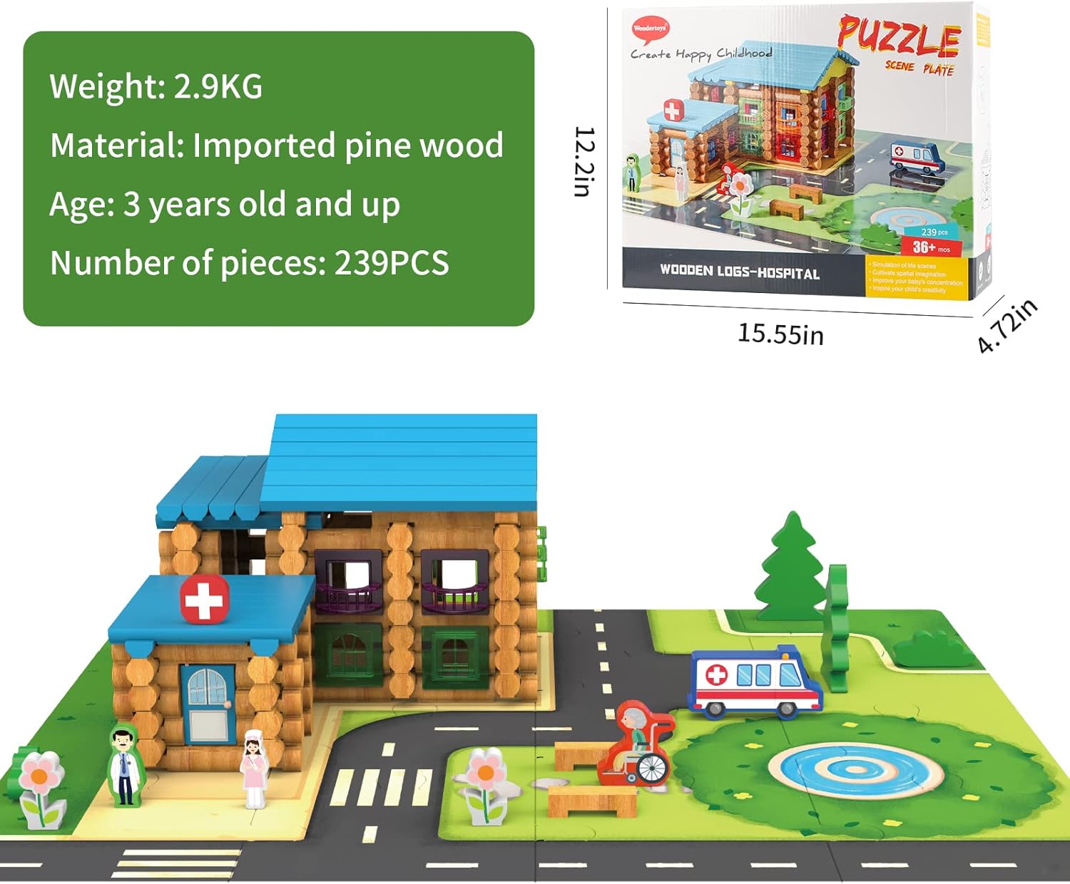 Acest set de construcție 3D din lemn este perfect pentru micii arhitecți în devenire, oferindu-le o experiență creativă și educativă. Cu cele 239 de piese, copiii pot construi un spital detaliat, incluzând clădirea principală, un vehicul de ambulanță și personaje din lemn, cum ar fi doctori și pacienți.