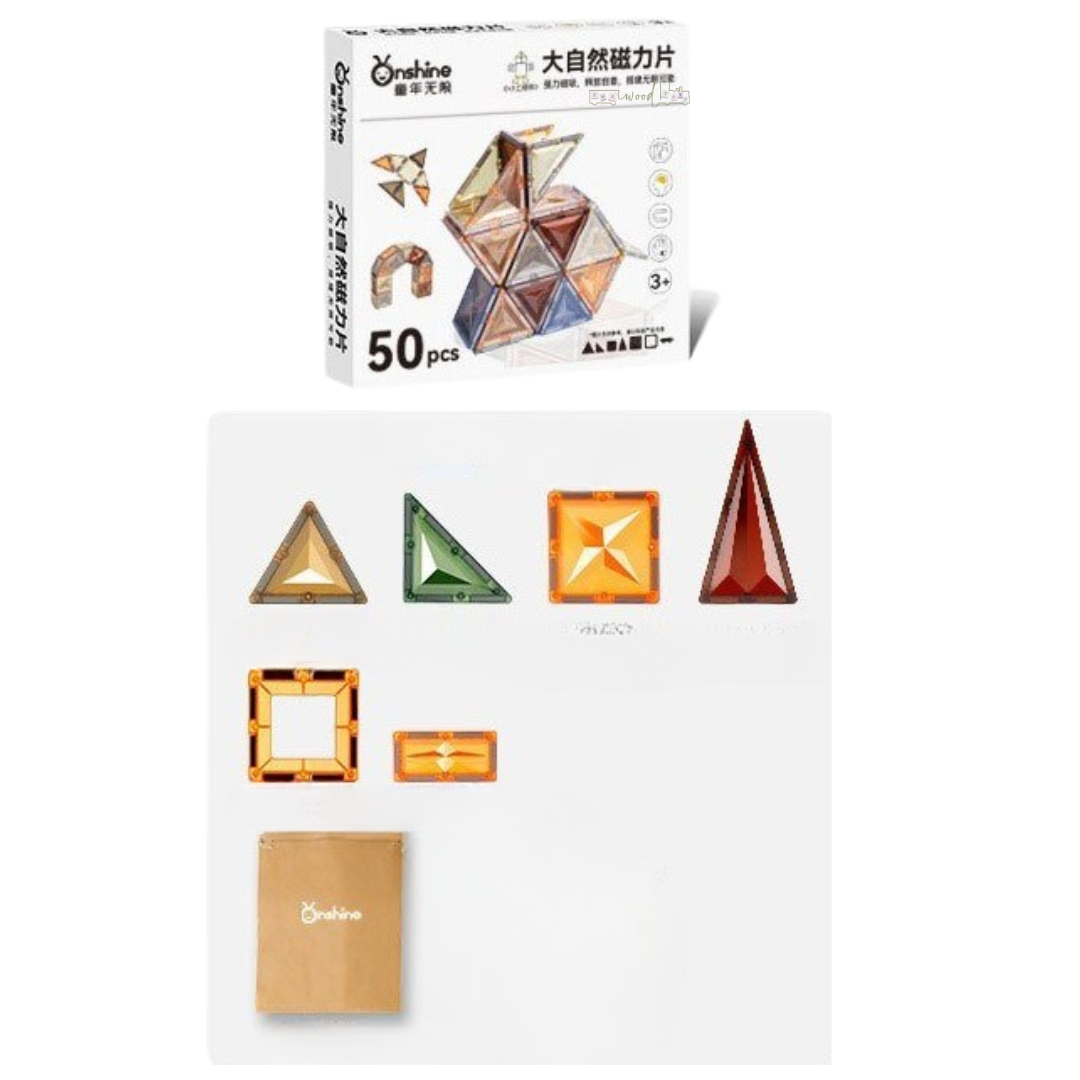 Setul conține: 50 piese magnetice în diferite forme (pătrate, triunghiuri, dreptunghiuri).