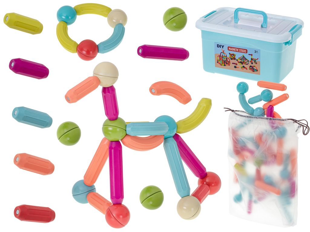 Set de constructie 3D, magnetic, 100 piese