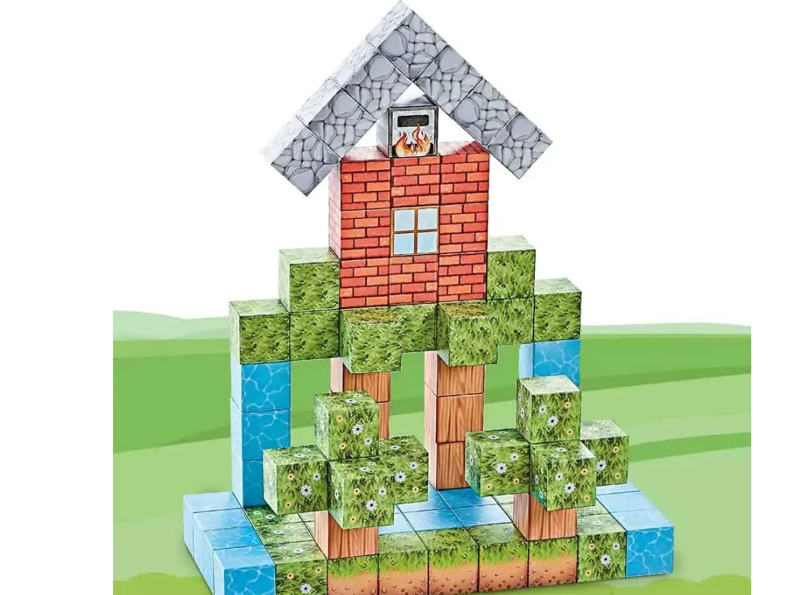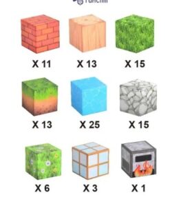 102 piese magnetice: apă, iarbă, lemn, cărămidă, piatră, cuptor pixelat