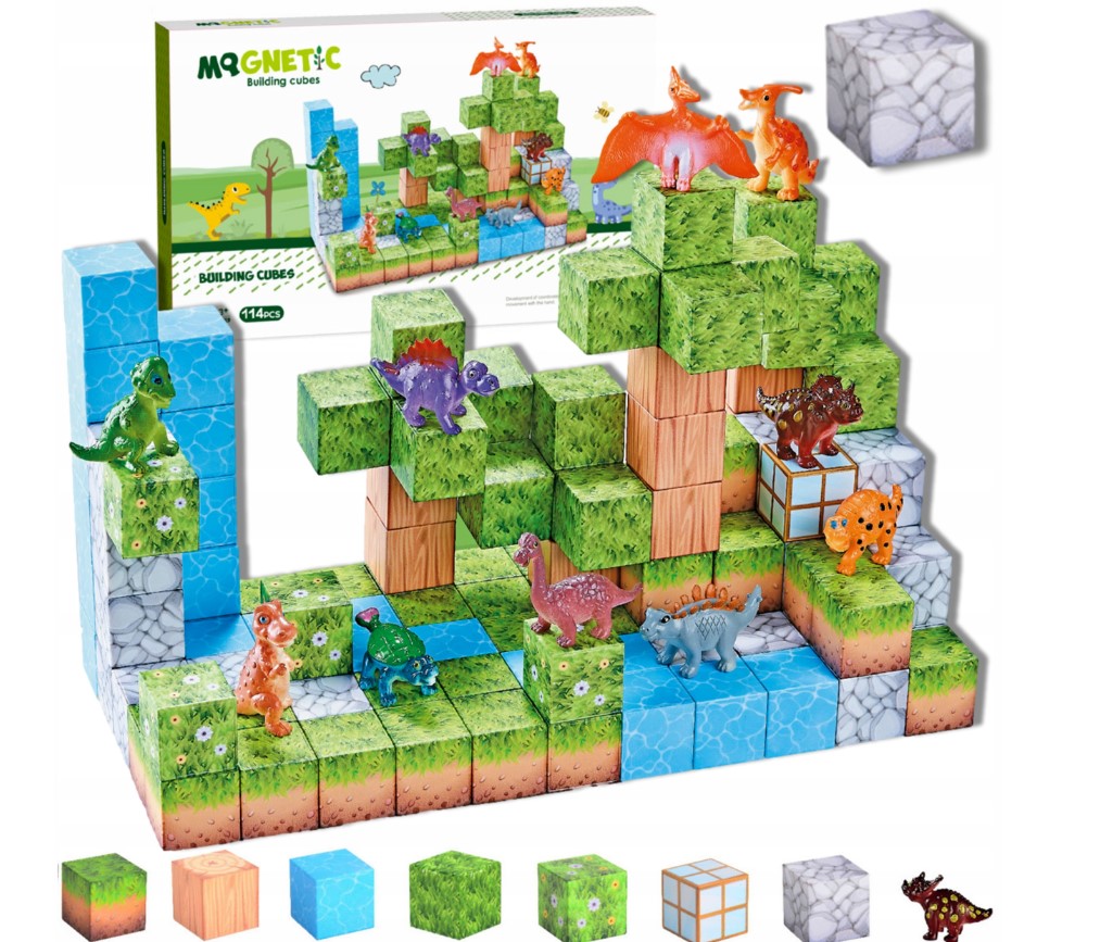 Set de construcție magnetic cu 114 piese – tematică Minecraft, 3 ani+