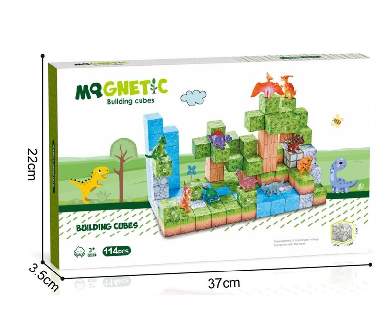 Un set creativ, ideal pentru micii fani ai universului Minecraft! Cuburile magnetice viu colorate și imprimate cu texturi de apă, piatră, iarbă, cărămidă sau lemn pot fi combinate în nenumărate moduri pentru a recrea structuri din joc sau pentru a inventa propriile lumi fantastice. Un joc educativ care dezvoltă imaginația, logica și coordonarea mână-ochi.