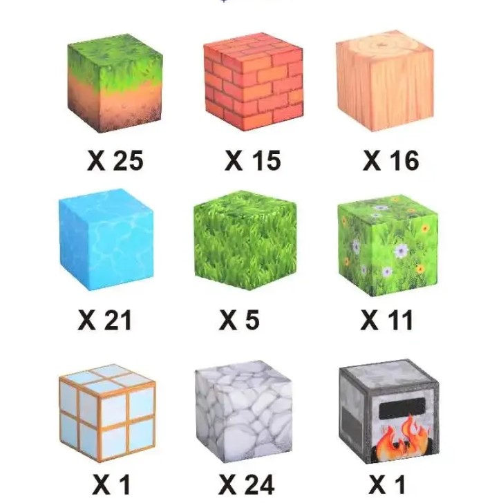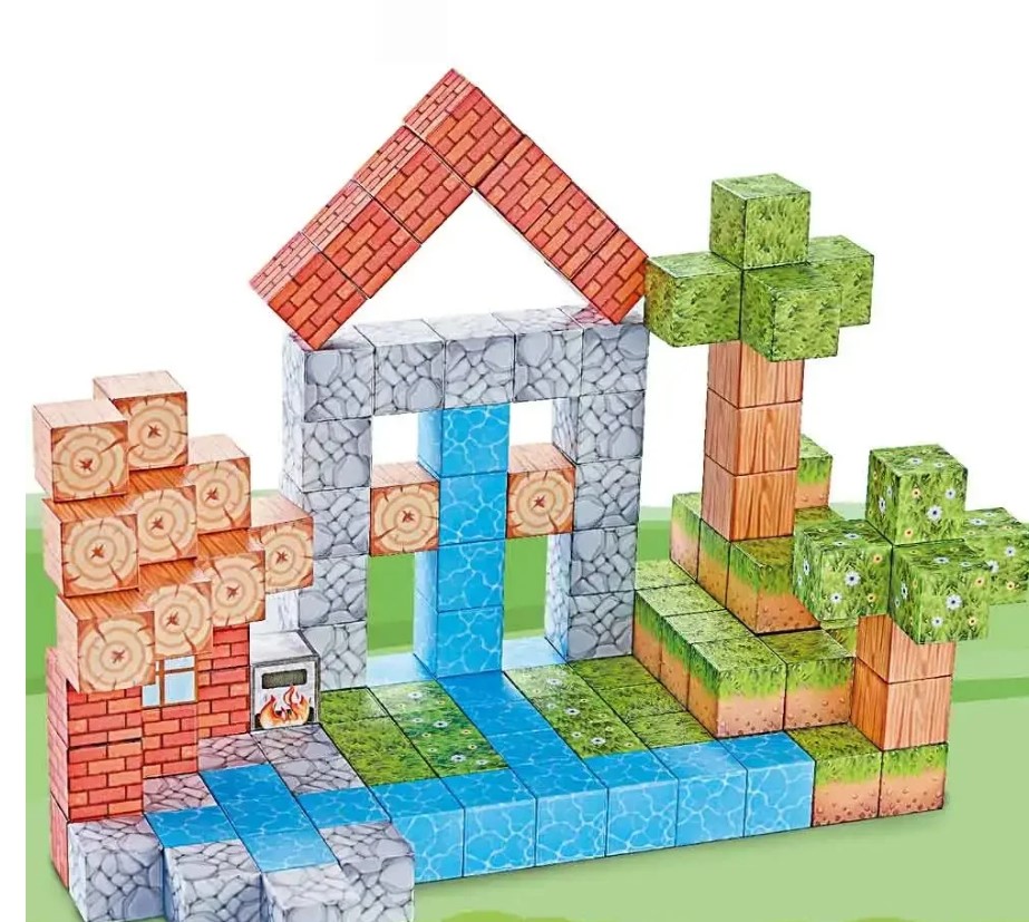 Cuburile sunt decorate realist (apă, iarbă, piatră, lemn, cărămidă, cuptor etc.), se conectează prin magnetism și pot fi refolosite la nesfârșit pentru noi construcții!