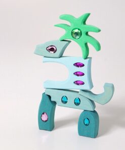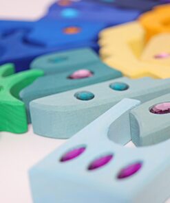 Conține: piese din lemn colorate, în forme organice și arhitecturale, cu detalii ornamentale (cristale acrilice colorate)