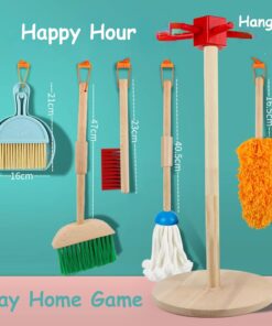 Acest set de curățenie din lemn este special conceput pentru copii, pentru a-i ajuta să descopere prin joacă activitățile casnice, dezvoltându-și în același timp abilitățile motrice, responsabilitatea și coordonarea mână–ochi. Realizat din materiale sigure și rezistente, setul le permite celor mici să imite activitățile adulților într-un mod educativ și distractiv.