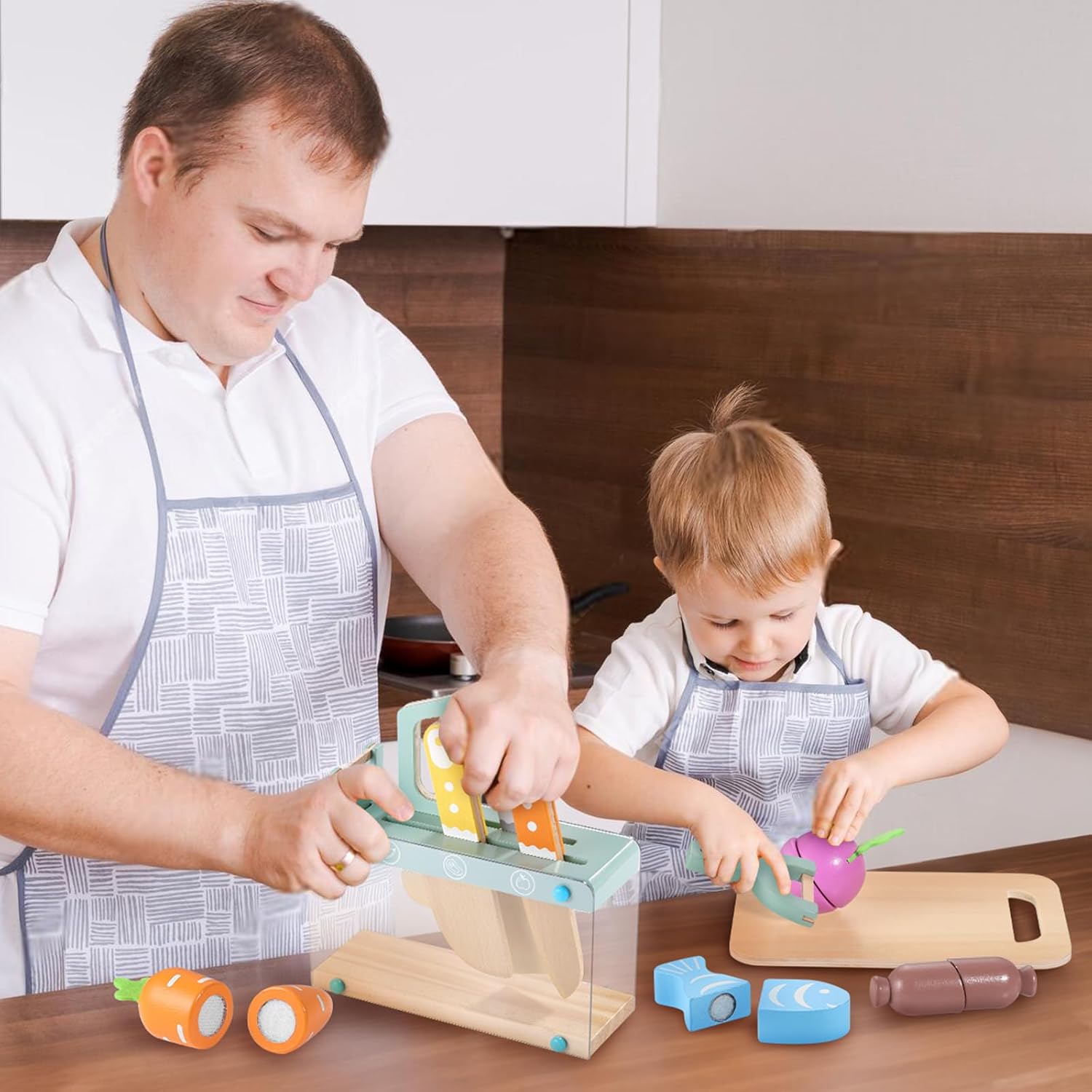 Transformă joaca într-o experiență culinară educativă cu acest set complet de gătit din lemn, special conceput pentru micii bucătari! Setul include ustensile, alimente și accesorii realiste care încurajează jocul de rol, dezvoltarea abilităților motrice și învățarea prin imitație, în spiritul pedagogiei Montessori.