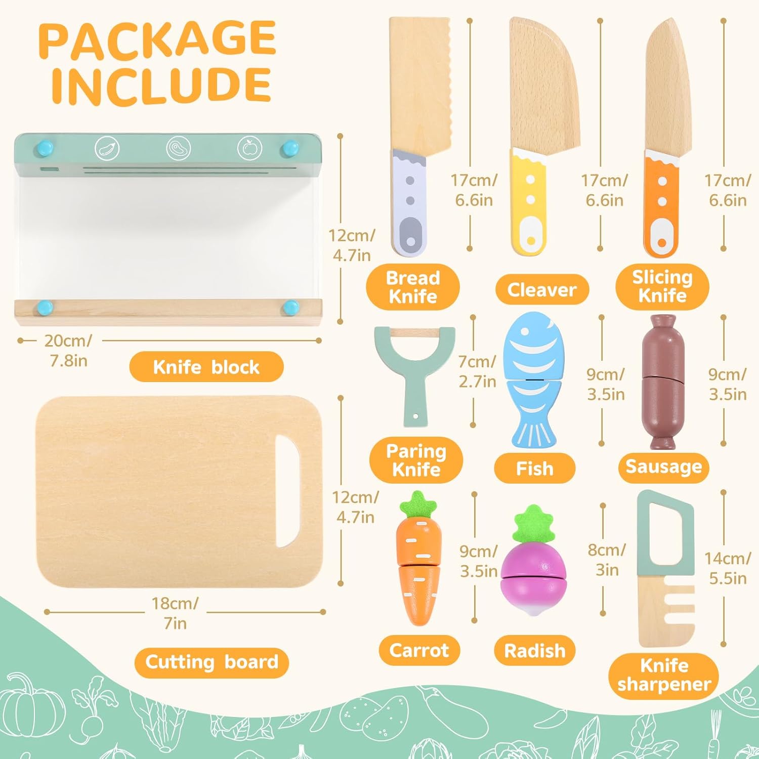 Set de gătit din lemn cu 11 accesorii pentru copii, 3 ani+