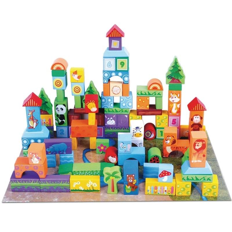 Set educativ de 100 cuburi din lemn multicolore pentru construit – Safari