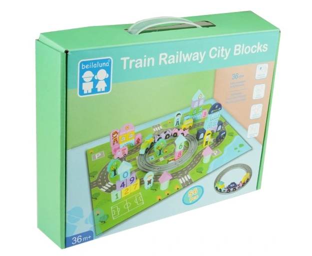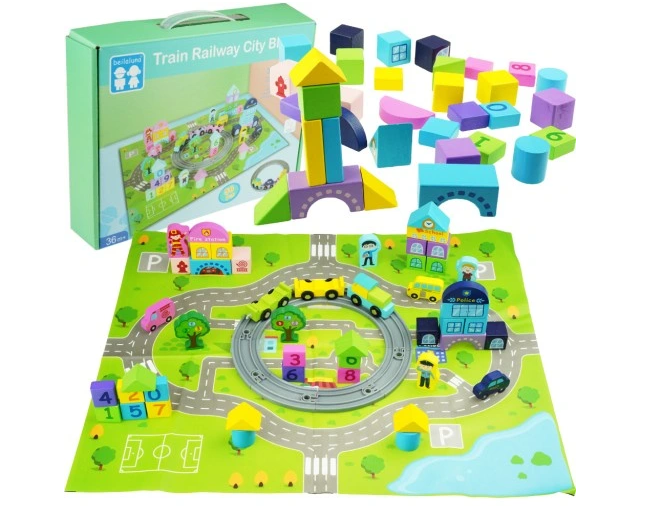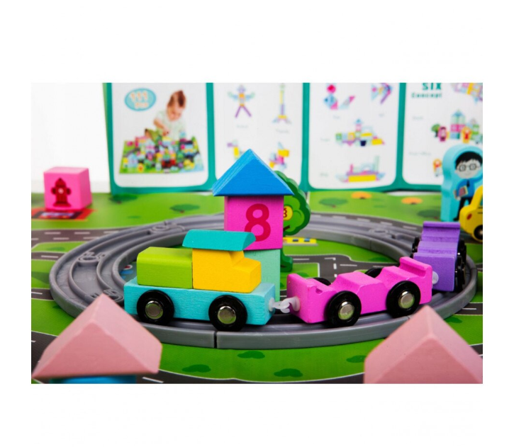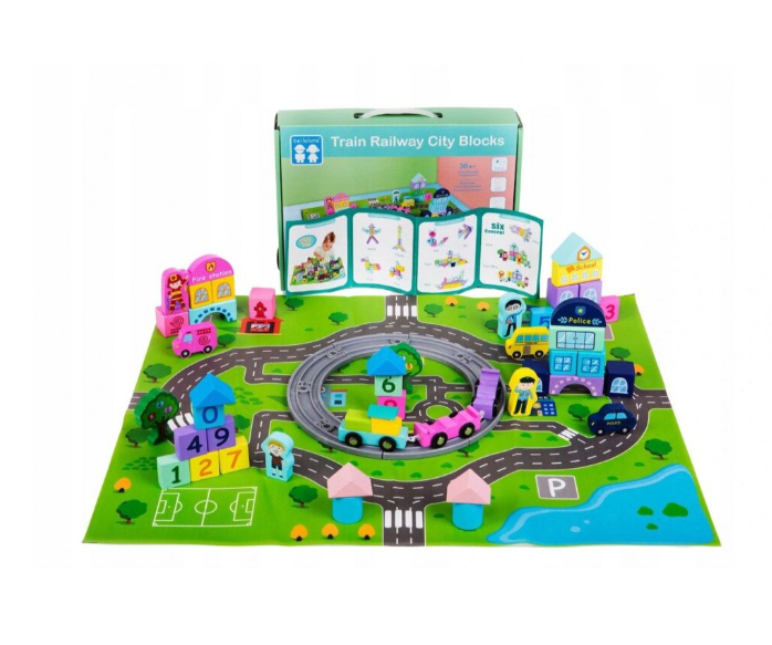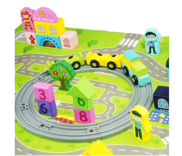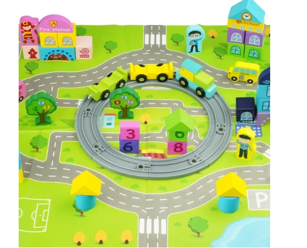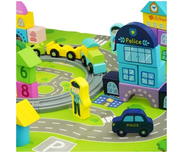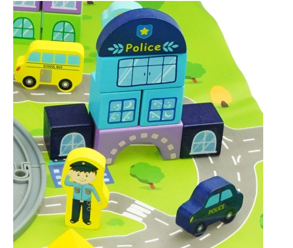 Set educativ de cuburi din lemn cu covoras – Orasel, 3 ani
