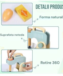 Set mixer din lemn cu accesorii pentru copii, 3 ANI