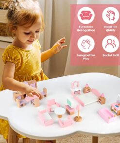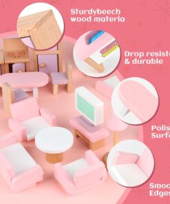 Setul de mobilier din lemn pentru case de păpuși este alegerea perfectă pentru copiii care iubesc jocurile de rol și activitățile imaginative. Realizat cu grijă din lemn natural și finisat cu vopsele non-toxice pe bază de apă, acest set miniatural oferă o experiență realistă și educativă, ajutând copiii să descopere organizarea unei locuințe și rolurile din viața de zi cu zi.