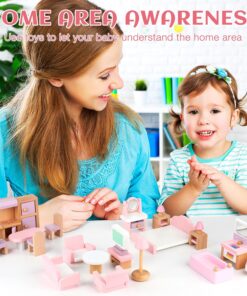 Copilul poate aranja piesele de mobilier în casa de păpuși sau le poate folosi separat, pentru a crea propriile scenarii și povești. Poate amenaja dormitorul, baia, bucătăria sau sufrageria după preferință, dezvoltând astfel gândirea logică și creativitatea.