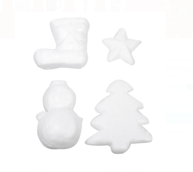 Setul creativ din spuma, cu tematica Craciun, pentru lucru manual acasa sau la gradinita contine: 2 fulgi, 2 stele, 2 oameni mici de zapada, 2 brazi, 2 cizme, 1 om mare de zapada, 1 stea mare.