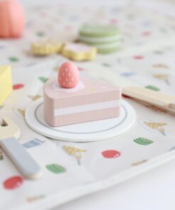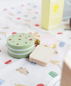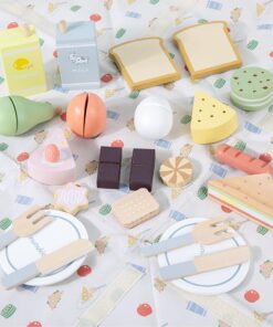 Materialele atent selecționate și designul realist permit copiilor să imite activitățile adulților, dezvoltând motricitatea fină, coordonarea ochi-mână și vocabularul specific activităților de servire a mesei. Fiecare element din set este realizat din lemn de calitate, vopsit cu culori non-toxice pe bază de apă, pentru o experiență sigură și plăcută.