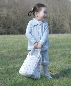 - Material: Lemn masiv, vopsit cu culori pe bază de apă, țesătură durabilă pentru pătură/geantă.