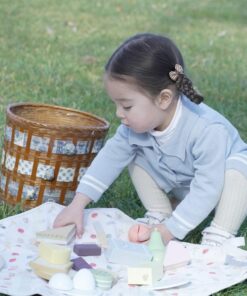 Acest set de picnic din lemn este conceput pentru a susține dezvoltarea autonomiei și a abilităților de viață practică la copii, în conformitate cu principiile metodei Montessori. Prin jocul de rol, cei mici învață despre organizarea meselor, servirea alimentelor și bunele maniere, într-un mod natural și intuitiv.