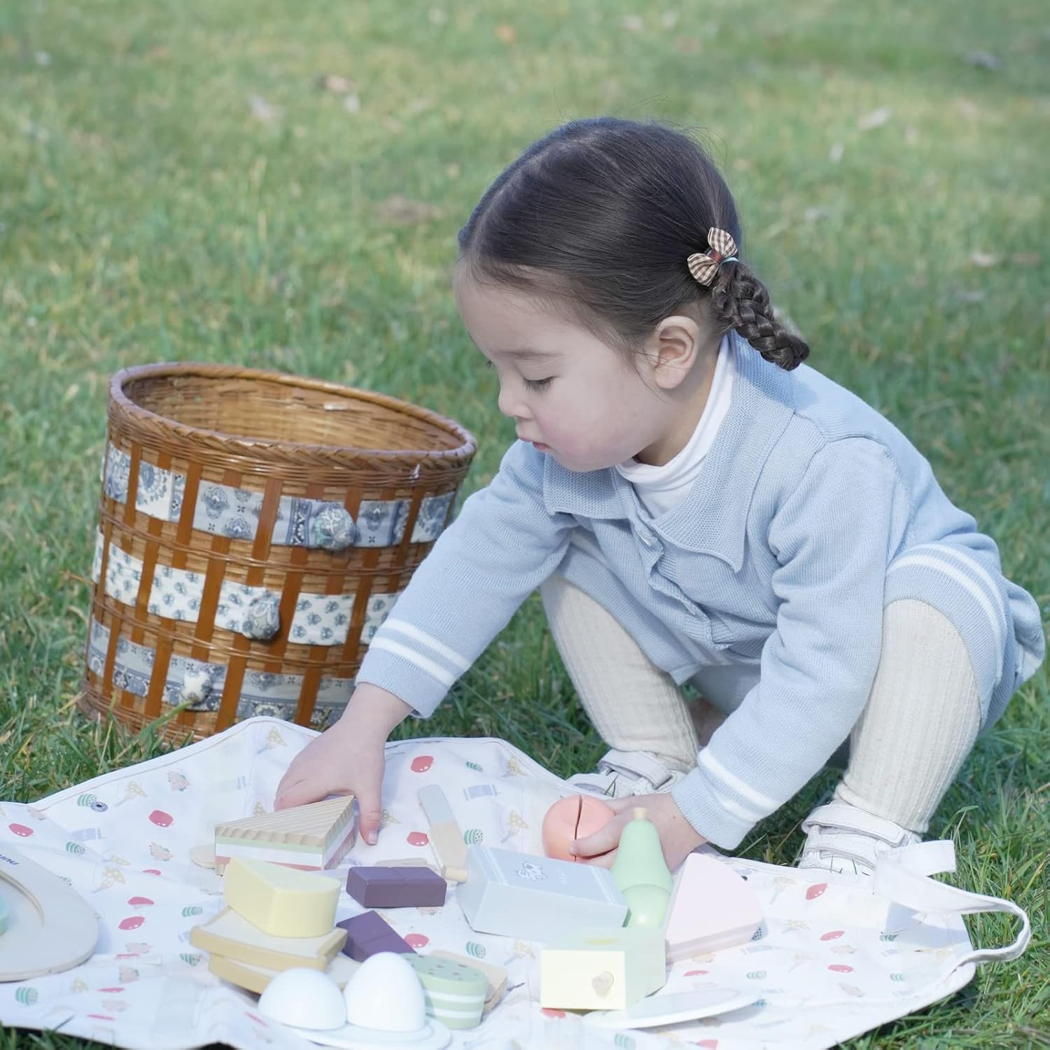 Acest set de picnic din lemn este ideal pentru copiii care adoră să imite activitățile din viața reală și să învețe prin experiență directă, oferindu-le o bază solidă pentru dezvoltarea independenței și a abilităților sociale esențiale.