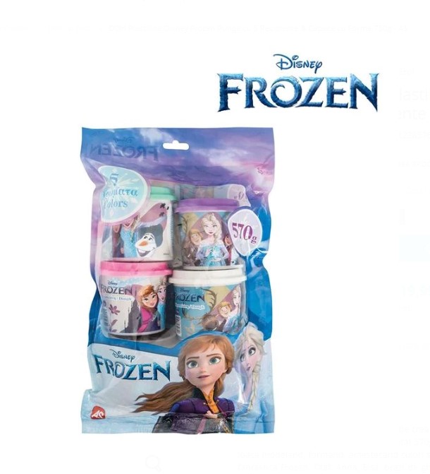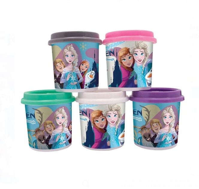 Set Plastilina 5 recipiente Frozen, capac cu matrita, 570 grame, 3 ani +