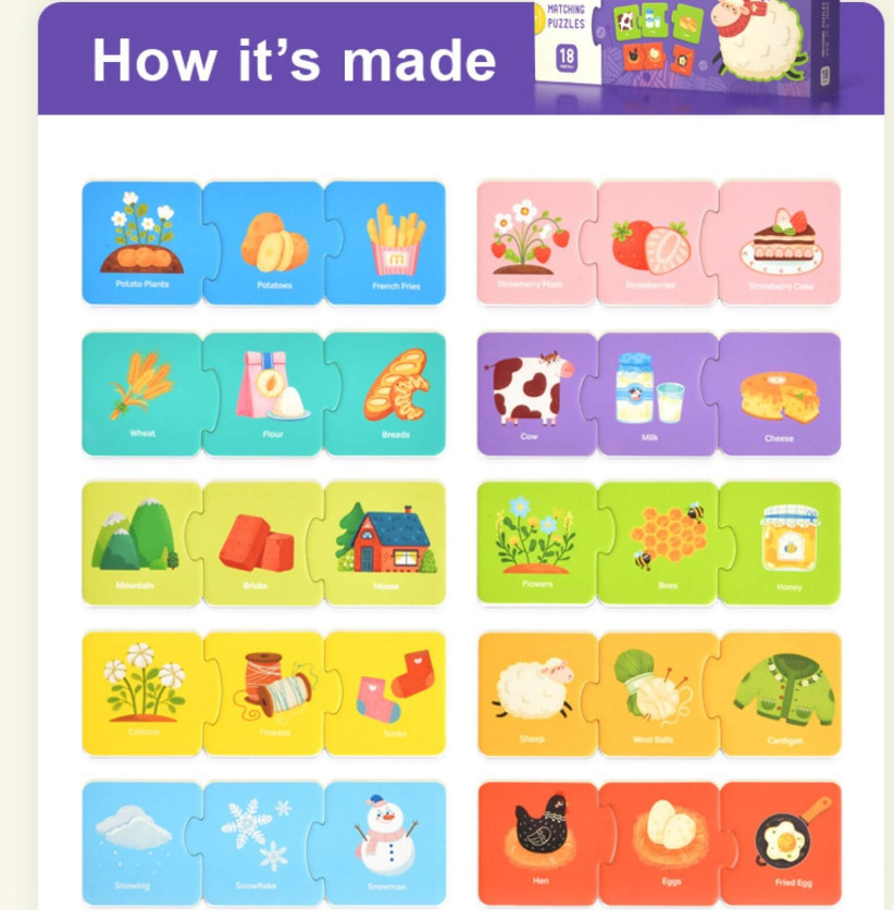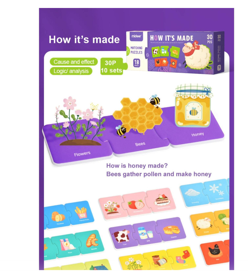 Set Puzzle de asociere cu 3 piese, Cum este creat, Mideer, 18 luni+