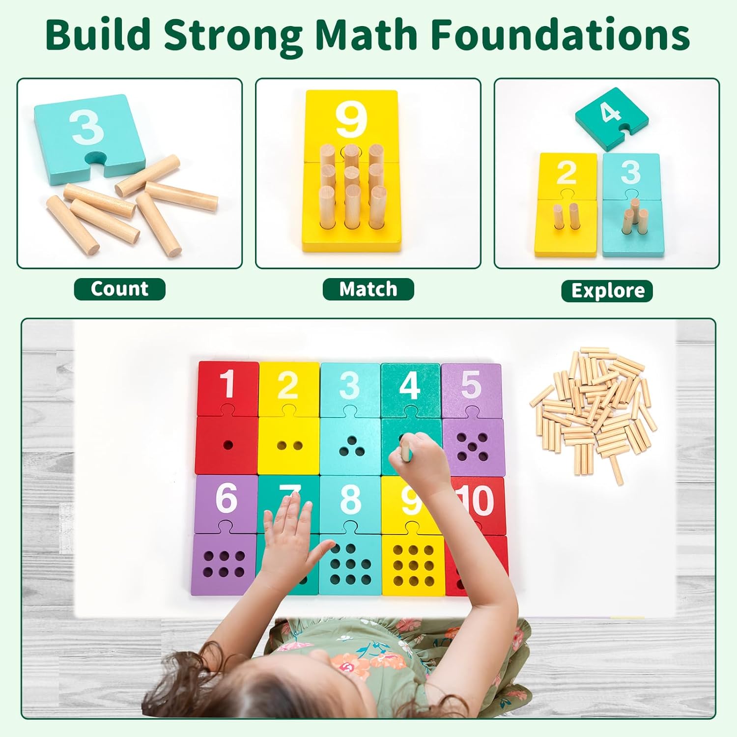 Acest joc educativ tip puzzle este special conceput pentru a ajuta copiii să înțeleagă noțiunile de bază ale matematicii prin joacă. Cu un design colorat și intuitiv, setul dezvoltă gândirea logică, recunoașterea numerelor și coordonarea mână–ochi, fiind ideal pentru copii de peste 3 ani.