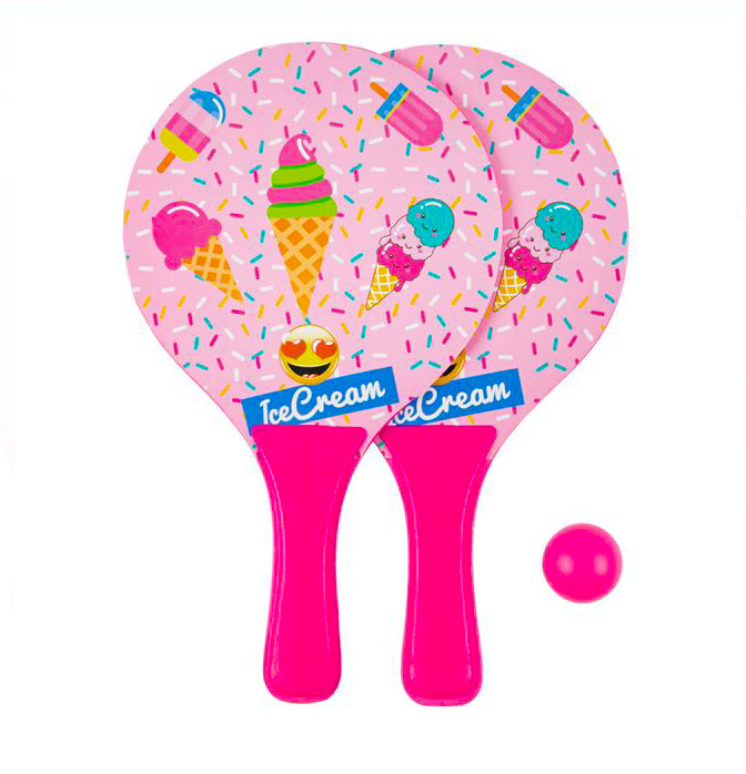 Set rachete pentru copii din lemn cu design unicorn. Au mânere antiderapante și o minge.