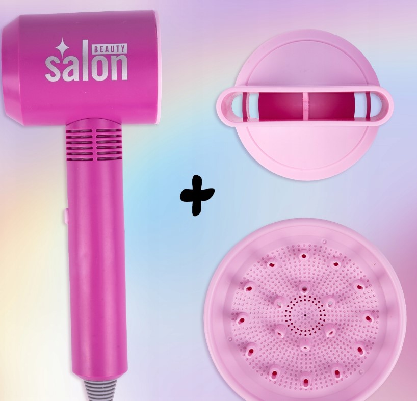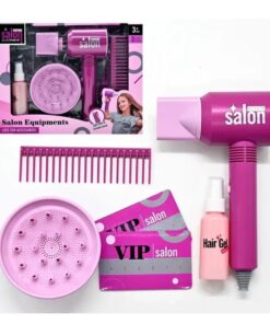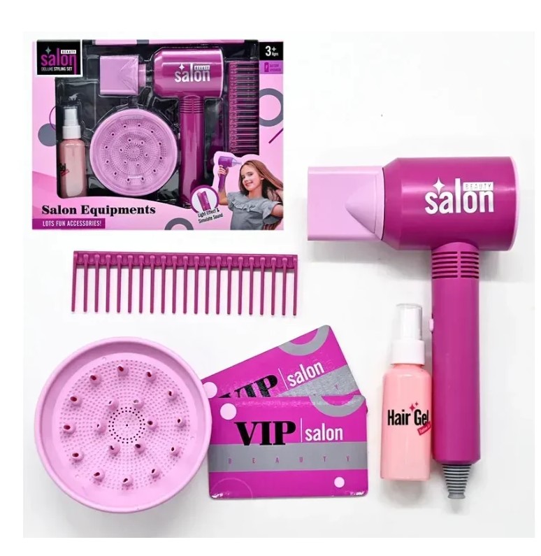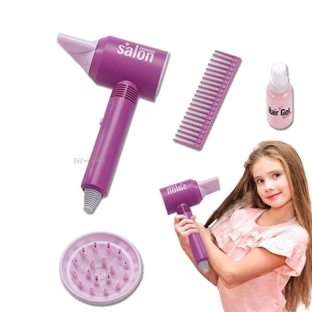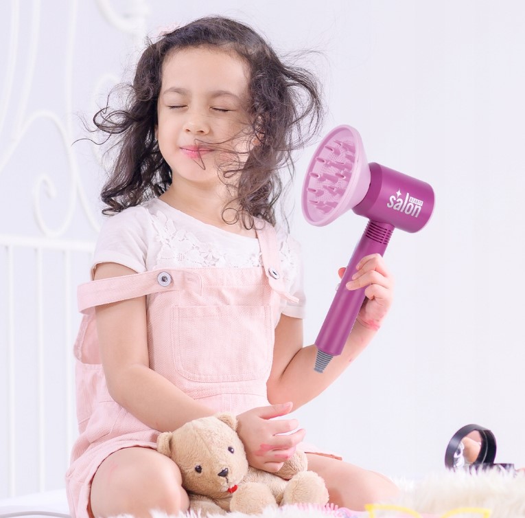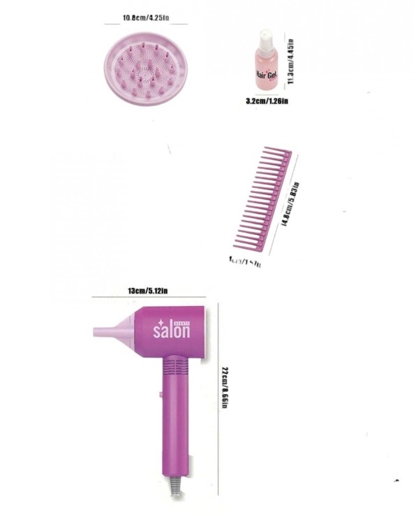 Setul de uscător de păr cu accesorii este conceput special pentru copiii care îndrăgesc jocurile de rol inspirate din activitățile adulților. Micuțele pasionate de frumusețe își pot crea propriul salon acasă, experimentând într-un mod sigur și distractiv activități de coafură.