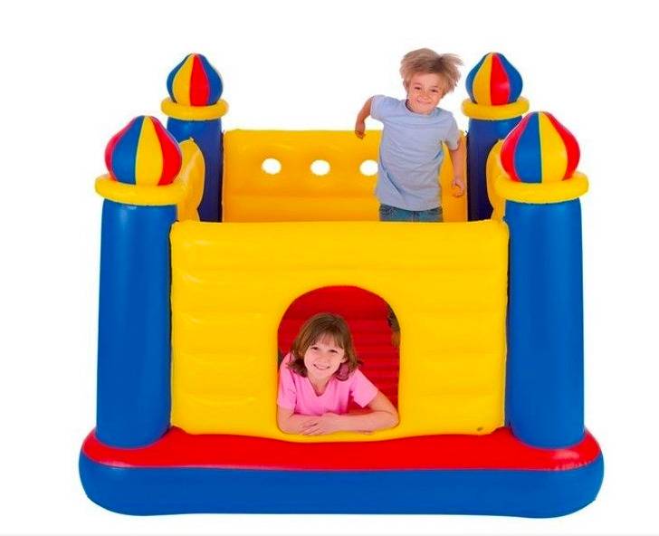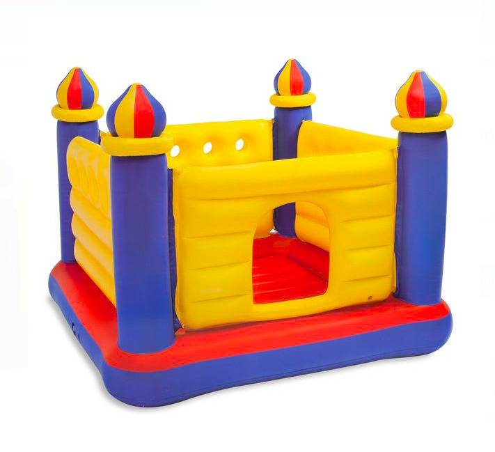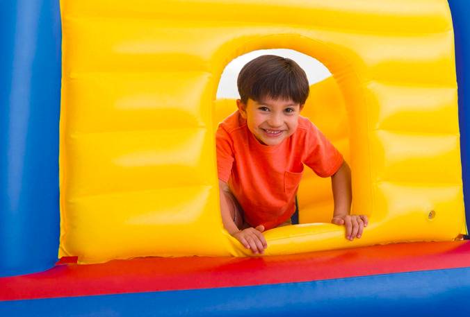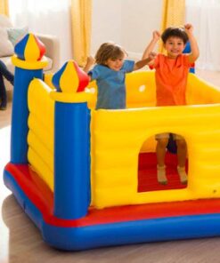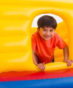 Cu trambulina gonflabilă Jump-O-Lene™, devii regele castelului tău! Castelul gonflabil Intex are o podea gonflabilă moale, pereți laterali înalți și moi pentru un mediu de joacă sigur și o ușă de intrare specială pentru sărituri nesfârșite!