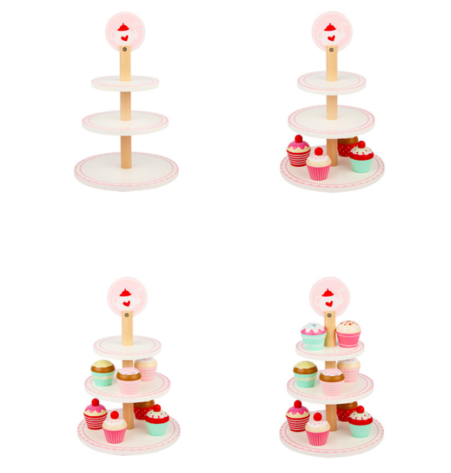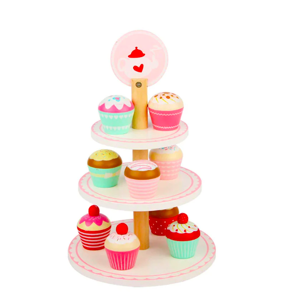 Acest stand de prăjituri din lemn este perfect pentru micuții care iubesc jocurile de rol și vor să își organizeze propria cofetărie. Setul include 10 brioșe colorate, realizate atent din lemn și decorate cu detalii realiste, fiind ideal pentru dezvoltarea creativității și abilităților sociale ale copiilor.