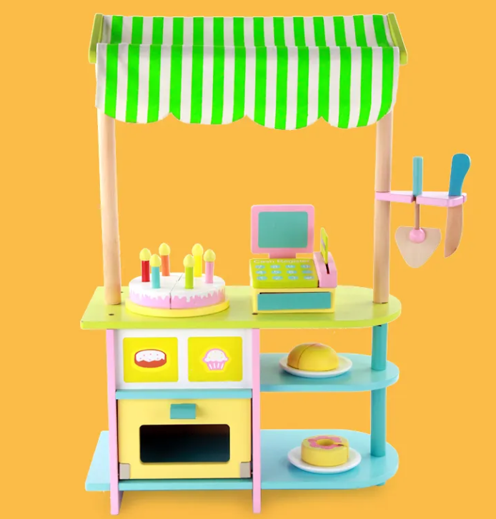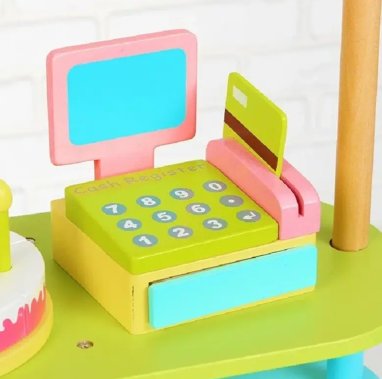 Transformă joaca în cofetărie cu acest stand din lemn adorabil, perfect pentru micii cofetari! Setul oferă o experiență completă de joc de rol, inspirată de metoda Montessori, și este ideal pentru dezvoltarea creativității, motricității fine și imaginației copiilor.