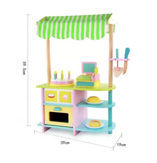 Stand din lemn, Cofetarie cu tort si prajituri de feliat, 59 cm, 3 ani